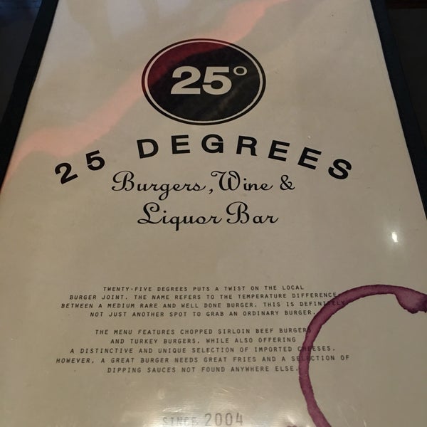 25 degrees burger wine liquor bar menu